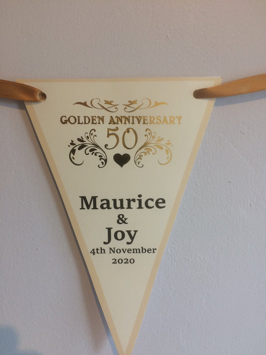 Personalised 50th Golden Wedding Anniversary Bunting Banner Party Decoration
